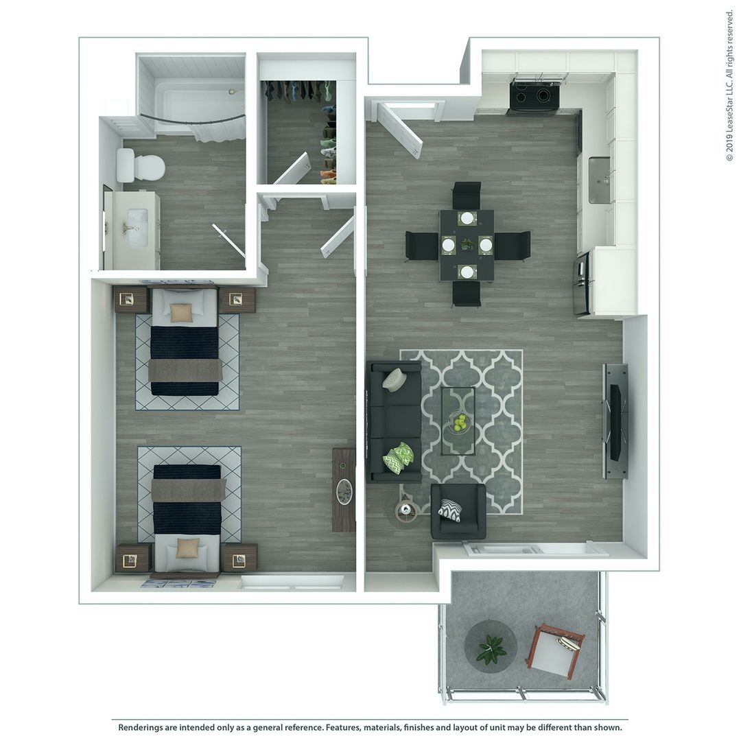 A smart-entry system grants you access to your apartment, where you will discover an array of high-end finishes from the moment you step inside. Stylish flooring leads you throughout the flexible layout, while a smart thermostat keeps the space comfortable. The contemporary kitchen includes sleek stainless steel appliances that gleam beside an elegant tile backsplash. Furnished balconies and patios transform into tranquil outdoor retreats where you can unwind after a busy day. Expansive walk-in closets allow you to easily organize all your wardrobe items and accessories as well.