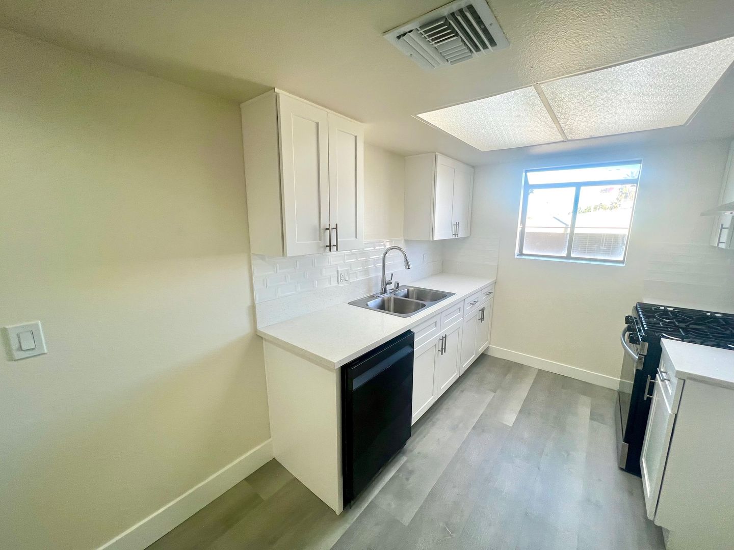 Check out this newly renovated upper two bedroom two bath apartment home in West Lancaster on 10th street near Avenue J. This apartment is bright and spacious and features vaulted ceilings, new accent paint with recessed lighting and modern plank flooring through out. The kitchen features quartz counter tops and new appliances including a stainless steel refrigerator, dishwasher and gas stove. Other features include, spacious closets, vertical blinds, new fixtures, central air conditioning. The property is close by Antelope Valley Medical Center. Call the onsite resident manager for a showing at 661-606-2891