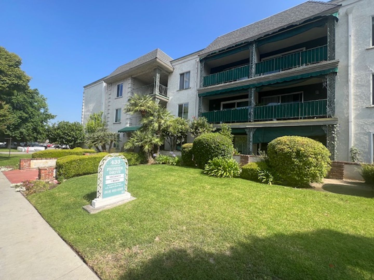 Welcome to 433 Pioneer Drive in Glendale, CA! We currently have a 3rd floor one-bedroom apartment featuring new paint, crown molding and plank flooring through out. The kitchen features granite counter tops, refrigerator, electric stove, and dishwasher. The unit also features a ceiling fan in dining, vertical window blinds, wall AC, lots of closet space, and your own private balcony over looking the pool. The building's amenities includes a laundry room, swimming pool, and assigned secured covered parking for your convenience. Sorry no pets allowed.
