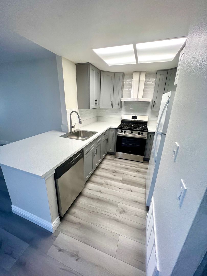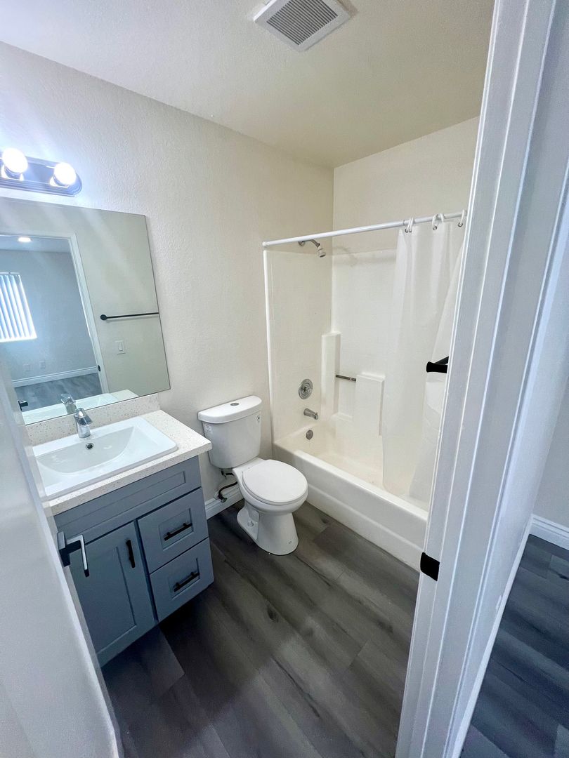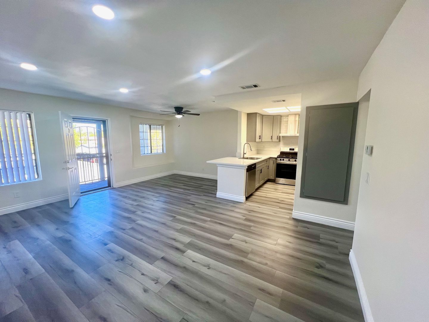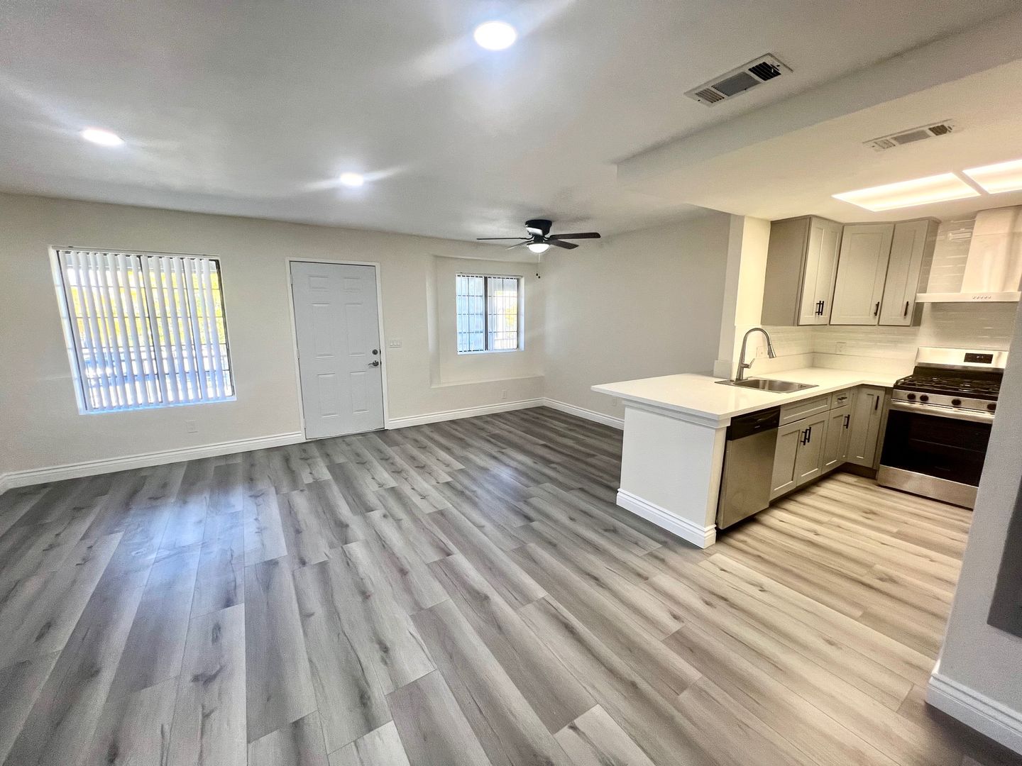 Check out this newly renovated upper two bedroom two bath apartment home in West Lancaster on 25th street just off the 14. This apartment features new accent paint with recessed lighting and modern plank flooring through out. The kitchen features quartz counter tops, new cabinetry and new appliances including a dishwasher and gas stove. Other features include, spacious closets, vertical blinds, new fixtures and central air conditioning. The property is set in a spacious park like setting with ample parking. The secured location is on 25th between J and J8 near shopping and restaurants. Call the onsite resident manager for a showing at 661-941-5059.
