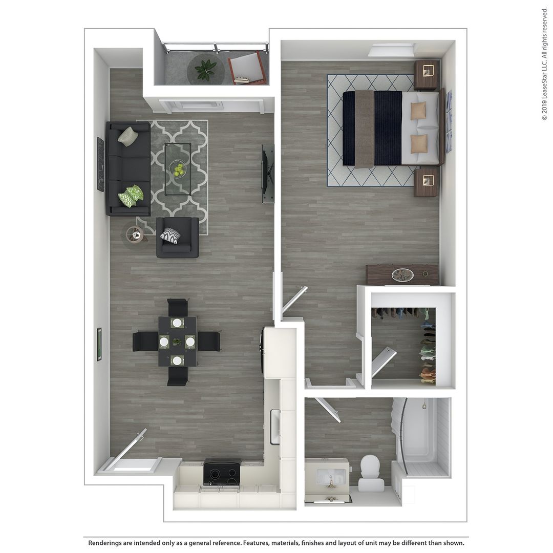 A smart-entry system grants you access to your apartment, where you will discover an array of high-end finishes from the moment you step inside. Stylish flooring leads you throughout the flexible layout, while a smart thermostat keeps the space comfortable. The contemporary kitchen includes sleek stainless steel appliances that gleam beside an elegant tile backsplash. Furnished balconies and patios transform into tranquil outdoor retreats where you can unwind after a busy day. Expansive walk-in closets allow you to easily organize all your wardrobe items and accessories as well.