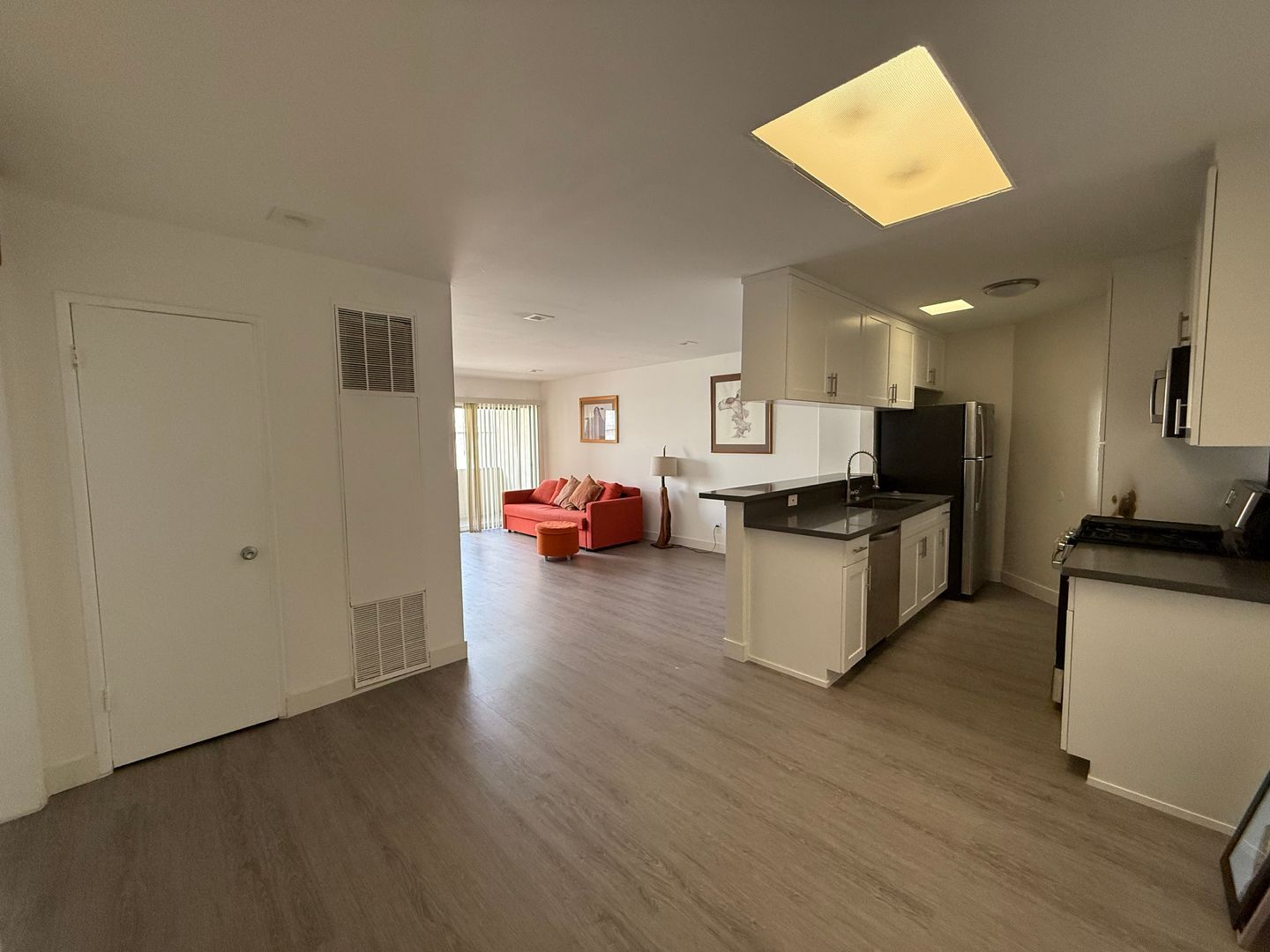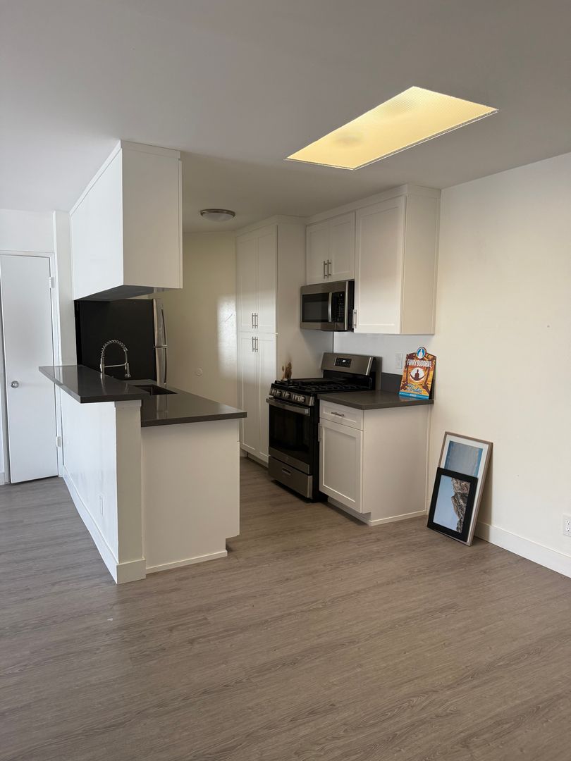 1 bedroom 1 bathroom unit with open floor plan kitchen into living room. Ample storage. Recently renovated. 1 assigned parking spot. Stainless steel appliances and laminate flooring.