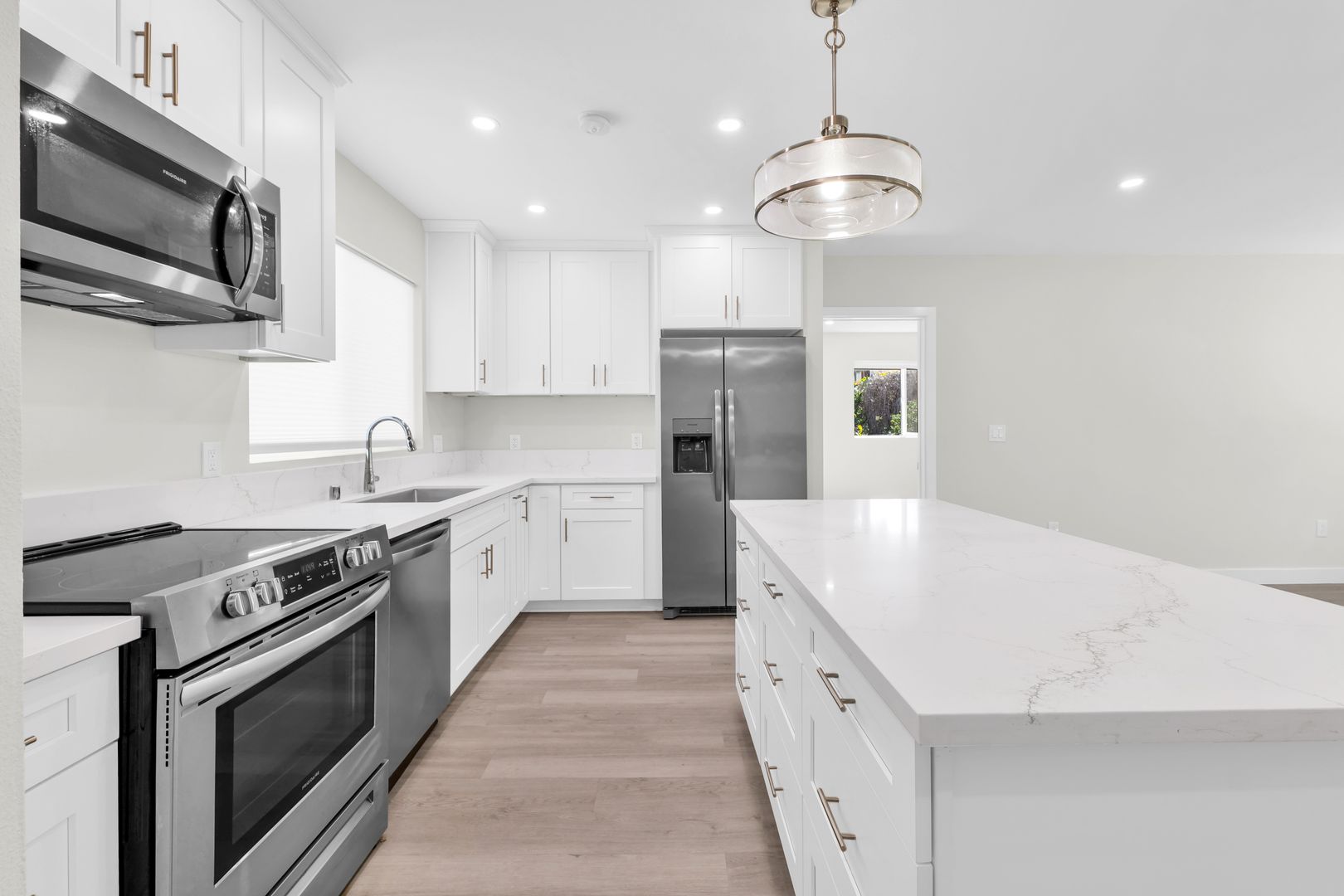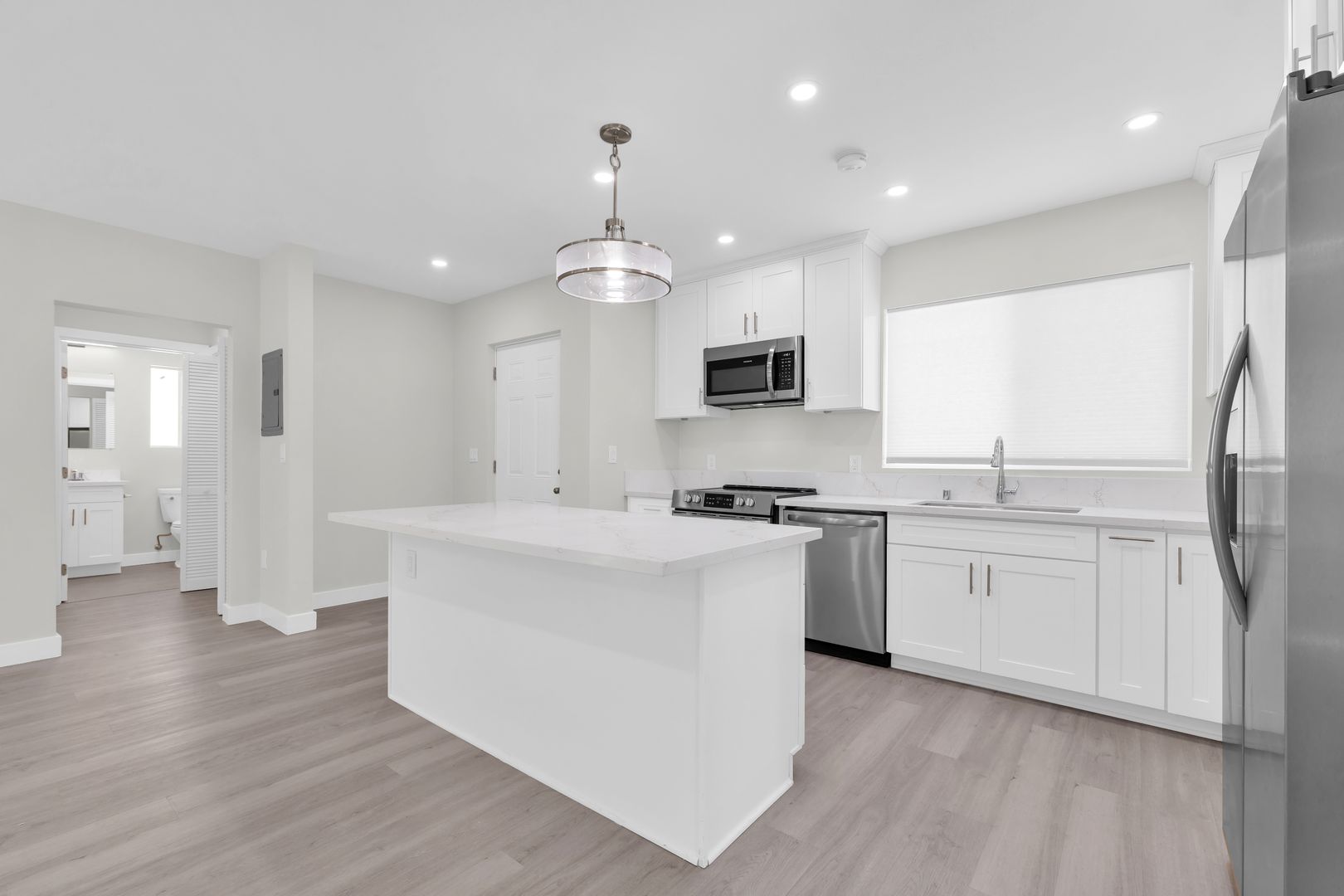 Discover modern living at its finest in this stunning new construction located in the heart of Westwood, right off the prestigious Wilshire corridor and adjacent to the iconic Los Angeles California Temple. This highly desirable 2-bedroom, 2-bathroom unit features NO SHARED WALLS, ensuring your privacy and comfort. Enjoy contemporary amenities including an in-unit washer and dryer, stainless steel appliances, sleek quartz countertops, new cabinets, energy-efficient double-pane windows, recessed lighting,walk-in closets.