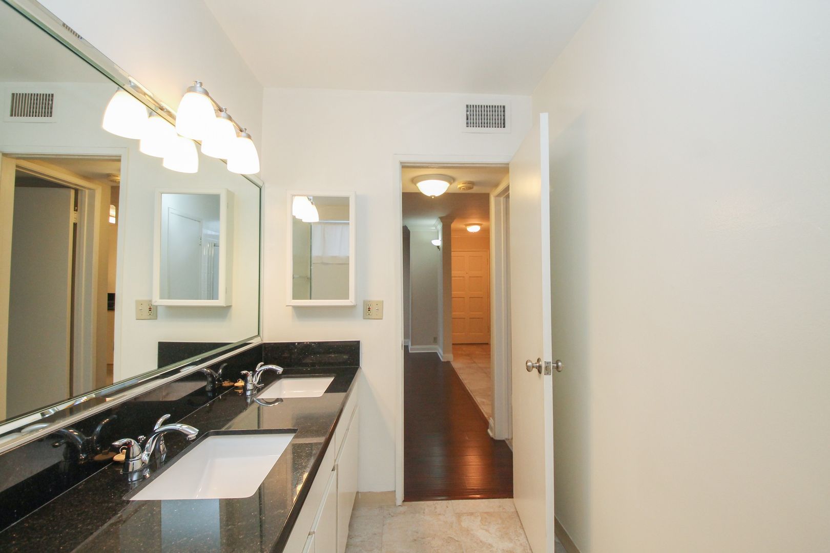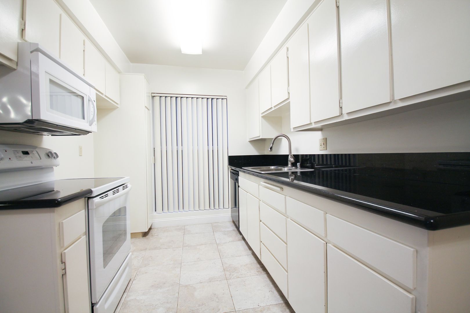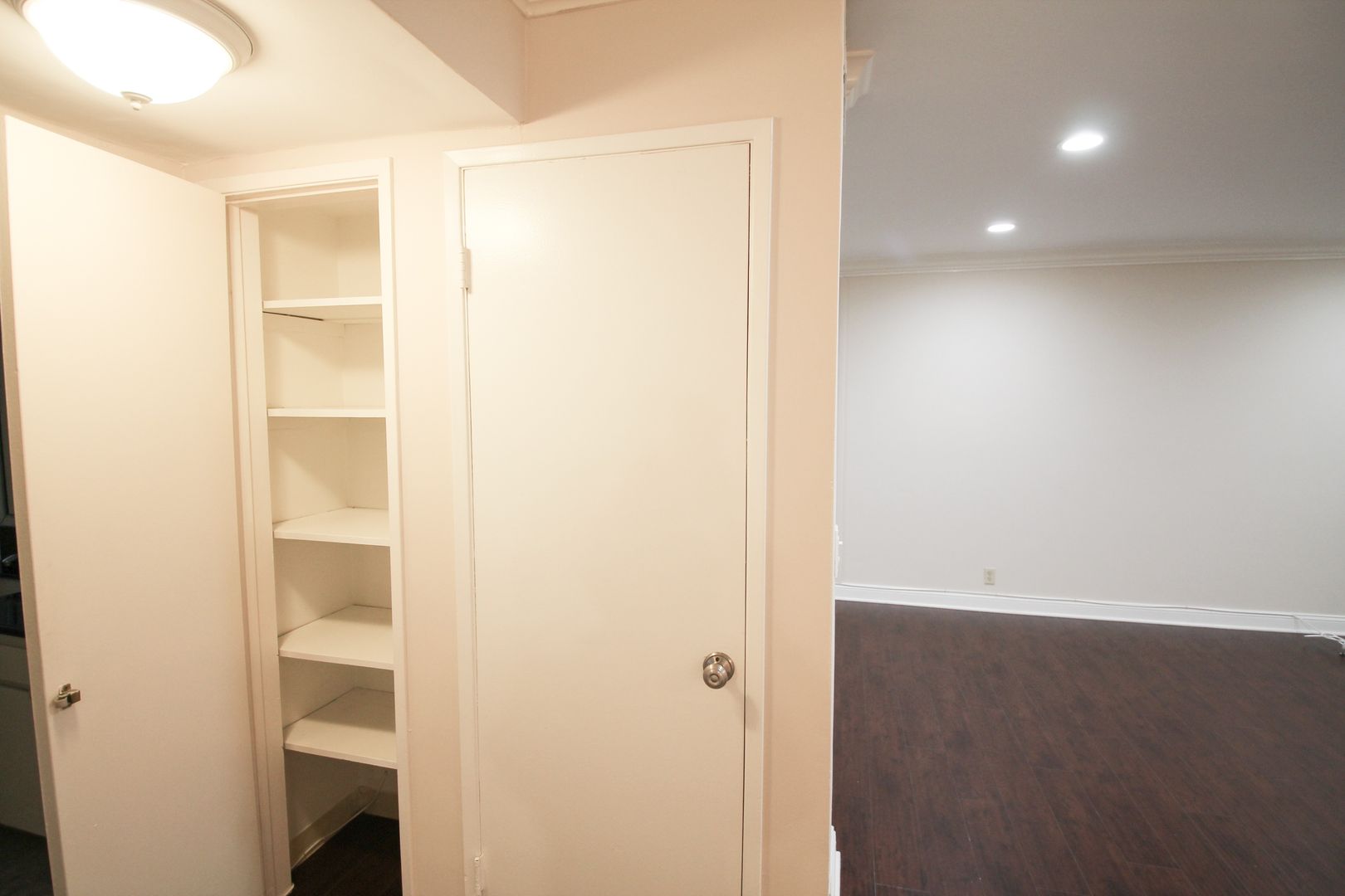 Enjoy this SUPER SPACIOUS, newly renovated 1 bedroom 1 bath apartment + den in the heart of Studio City. The unit features plank flooring in the living room and den, tile in the kitchen, dining area and bathroom. The kitchen and bathroom include gorgeous GRANITE COUNTERTOPS! The kitchen features modern appliances including a stove/oven, microwave, dishwasher, and garbage disposal. You'll love the large bathroom with a SEPARATE SHOWER STALL and TWO SINKS. PLENTY OF STORAGE! – FOUR CLOSETS: A large walk-in closet, a second large closet, a coat closet at by the entry, and a linen cabinet in the bathroom! Other great features include: multiple LED recessed lighting fixtures dimmer controlled in the living room and den as well as plenty of natural light throughout, CENTRAL A/C & Heat, crown moldings and smooth ceilings. The unit includes a gated covered parking spot. Elevator from garage level to apartments.