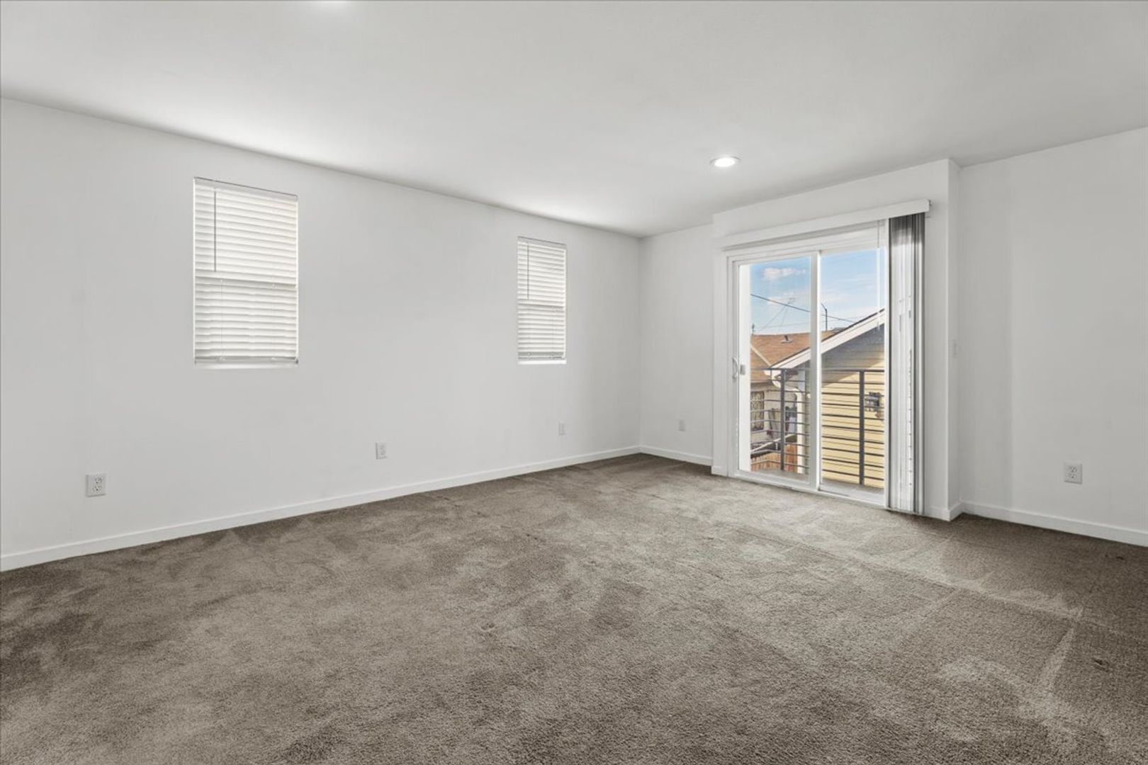 This modern, completely detached single family home offers a thoughtful layout, private outdoor space, and the convenience of a garage with in unit laundry. The main level features an open living area with wood style flooring, recessed lighting, and a sleek kitchen with white cabinetry, quartz style counters, stainless steel appliances, and tile backsplash. A half bathroom is located on the first floor for guests. Upstairs includes three well sized bedrooms, including a primary suite with sliding doors to a private balcony, mirrored closets, and a contemporary en suite bath. The secondary bathroom feature clean tile finishes and modern fixtures. Enjoy a private back patio tucked behind the home, perfect for enjoying the LA weather. Washer and dryer are located in the attached private two car garage. One of only two homes on the lot, offering privacy and a true single family feel.