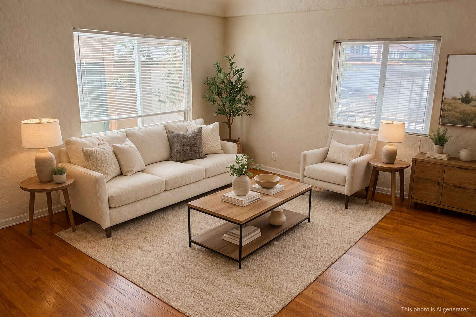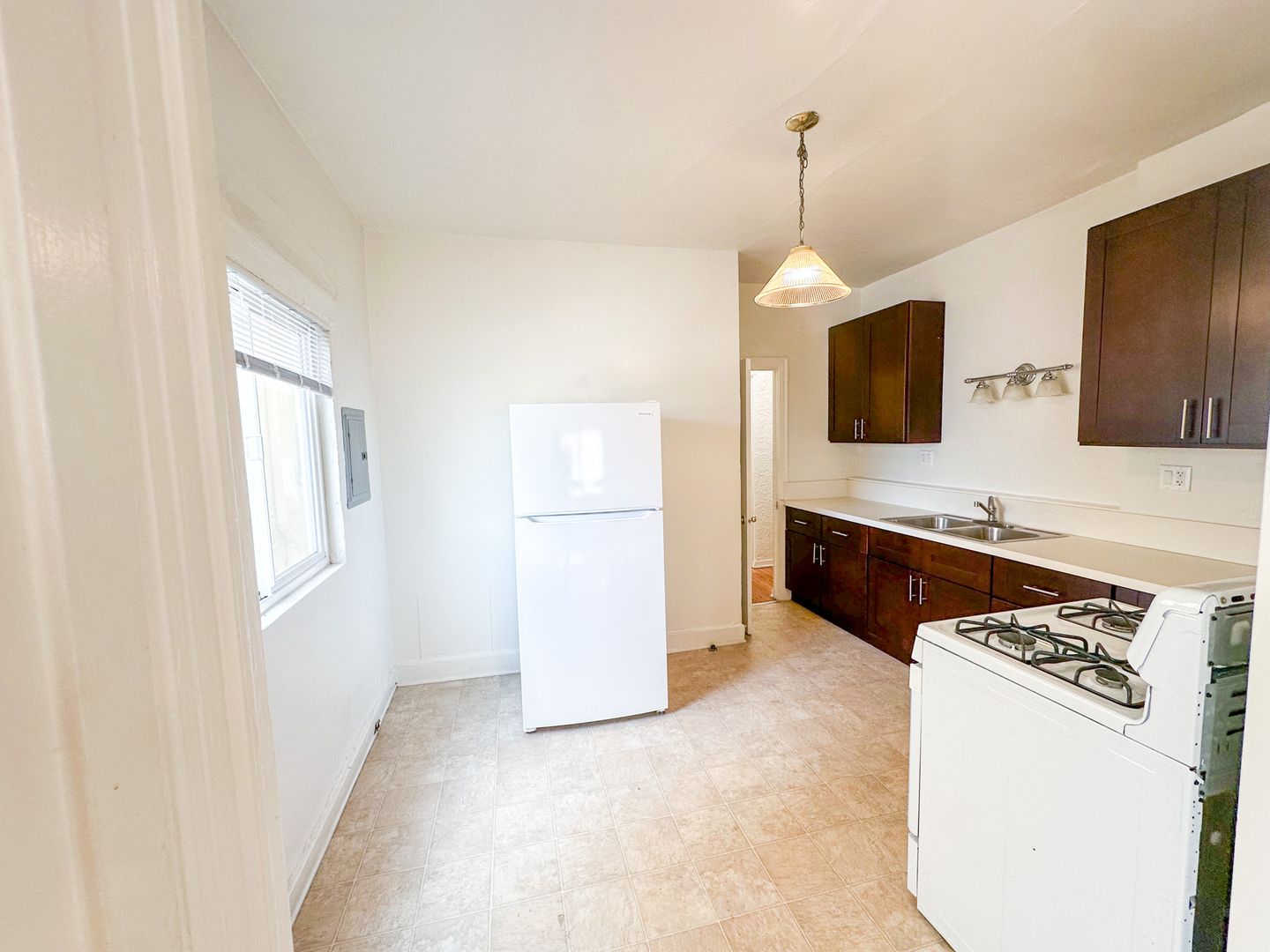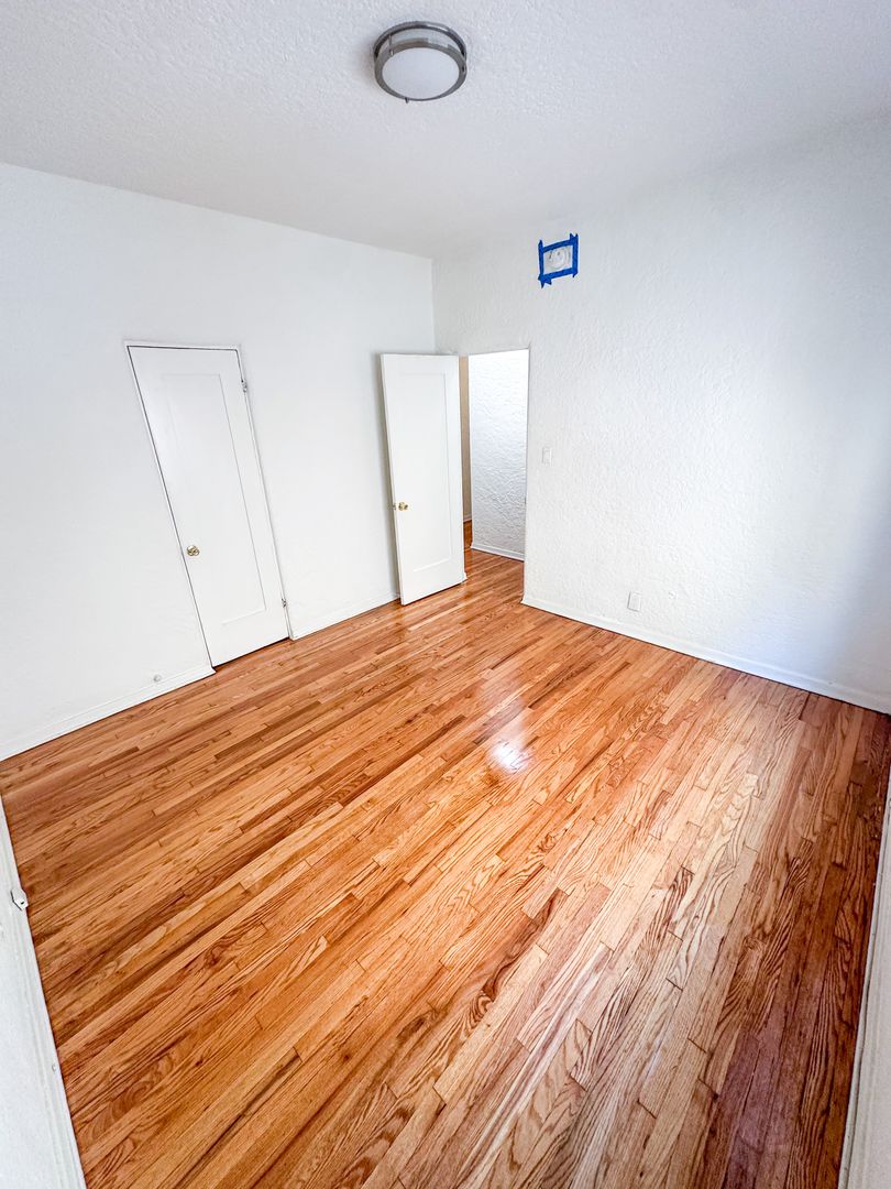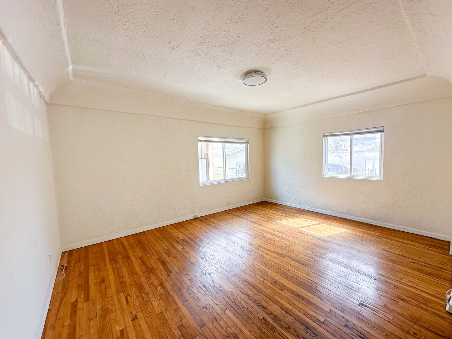 This 1st floor unit on the back side of the property is spacious and features real hardwood flooring throughout with charming Spanish-style arches and newly installed double pane windows. The kitchen features a breakfast nook, double sink, spacious granite countertops, garbage disposal, and a stove/oven. Other features include high ceilings, cable ready, new fixtures, and a private/secure entrance.