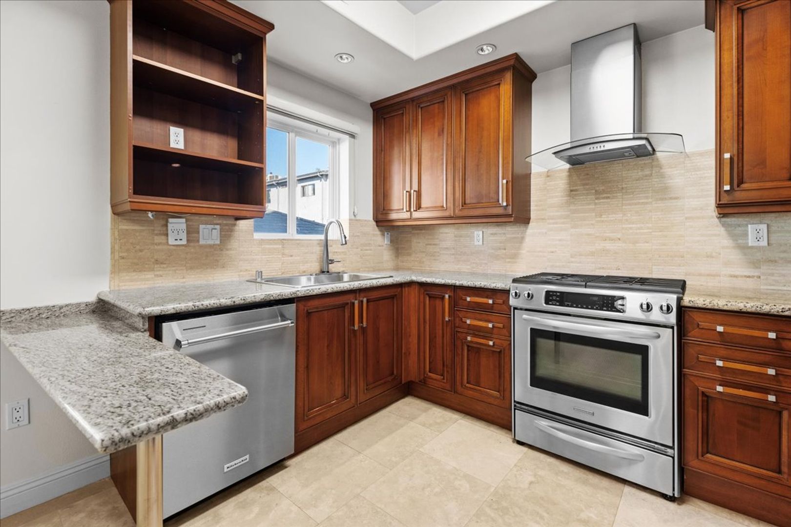 Enjoy the space and comfort of a single-family home with the convenience of gated townhome living in this stylish 3-bedroom, 2.5-bath unit in the heart of North Hollywood. Spread across three levels, this 1,429 sqft residence features a sunlit living room with fireplace and hardwood style floors, a chef’s kitchen with granite counters and stainless appliances, and an open dining area. Upstairs, the primary suite offers a large closet, dual-sink vanity, separate shower and tub, and private balcony access. Two additional bedrooms, in-unit laundry, central air, and recessed lighting round out the interior. Enjoy gated entry, direct access parking, and a well-maintained building close to studios, shopping, and the Chandler Bike Path.
