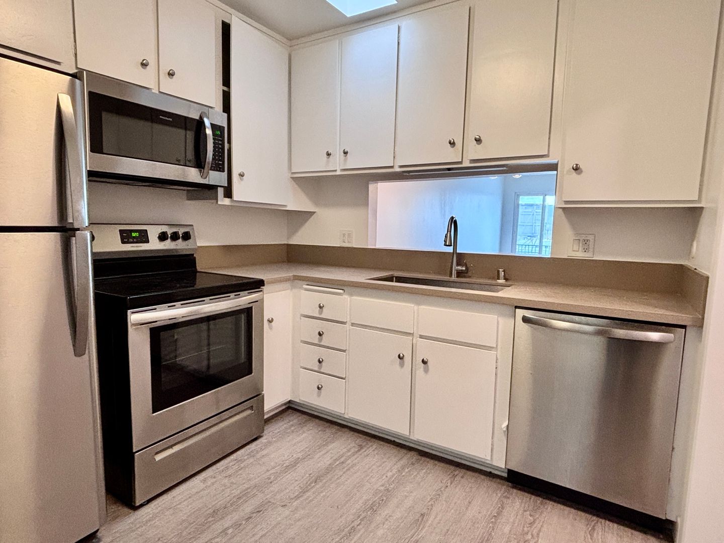 Experience the best of Beverly Grove living in this top floor, fully remodeled unit. This one-bedroom, one-bathroom apartment offers a modern and stylish living space in a prime location. Enjoy skylights in bathroom and kitchen, double pane windows, AC, stainless steel appliances. The unit is equipped with a range of amenities designed to enhance your living experience. Enjoy the convenience of gated parking, lobby, elevator, and charming courtyard. A remodeled laundry room with new machines is available for residents, making laundry day a breeze. The welcoming lobby creates a great first impression for your guests. This apartment combines comfort, convenience, and style, making it the perfect place to call home in the heart of Los Angeles.