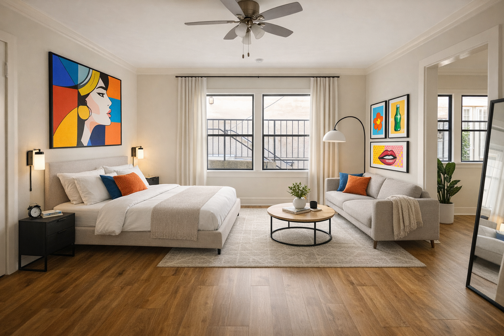 Spacious studio layout with natural light