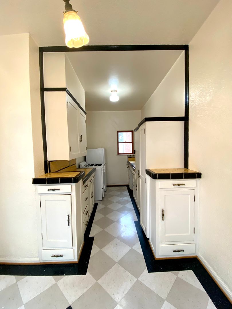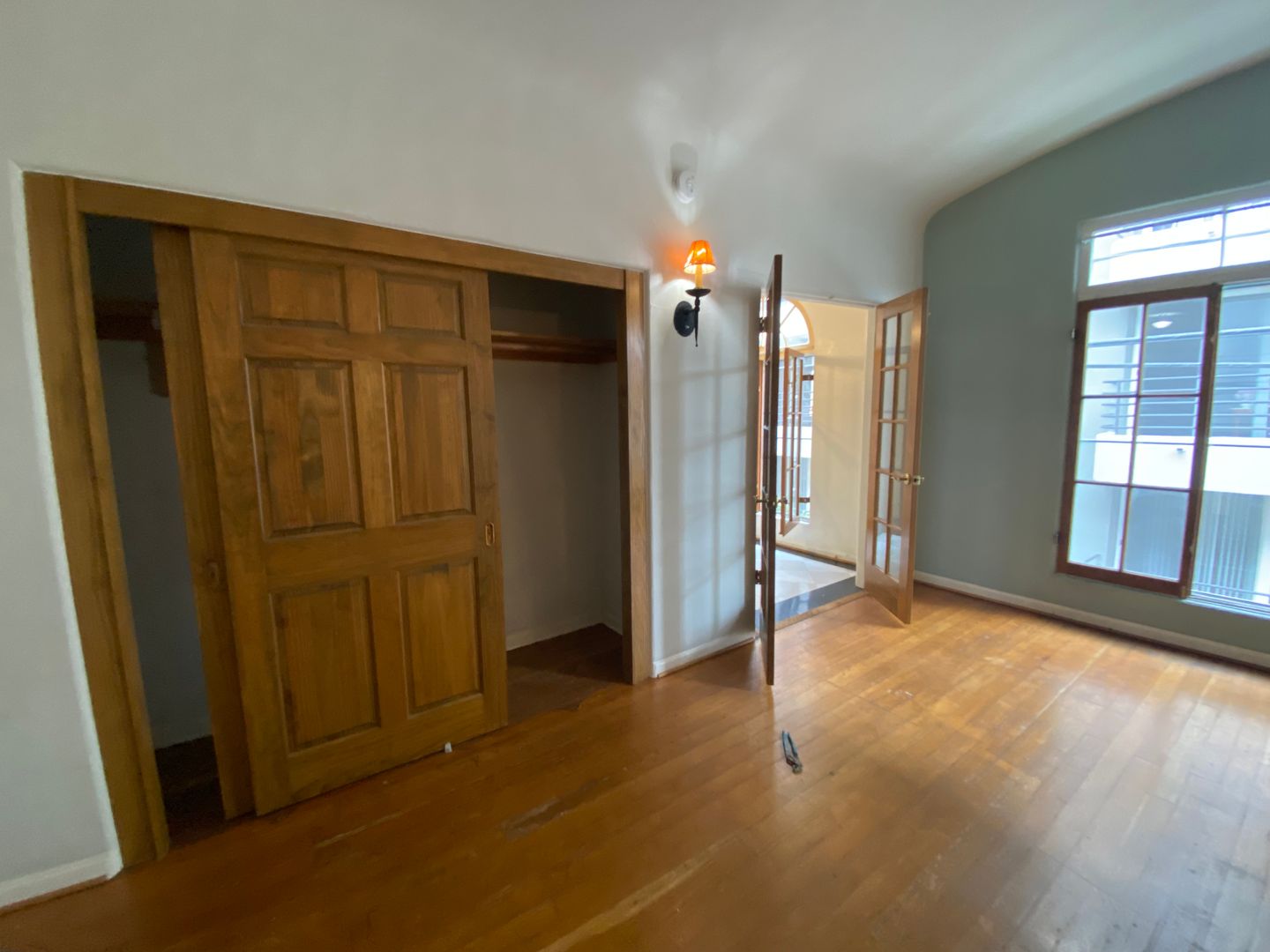 High ceilings. French windows, wood floors throughout, Gorgeous Wall scones and antique fixtures. The kitchen is covered in gorgeous tiles, Stove and Fridge are included in the unit.