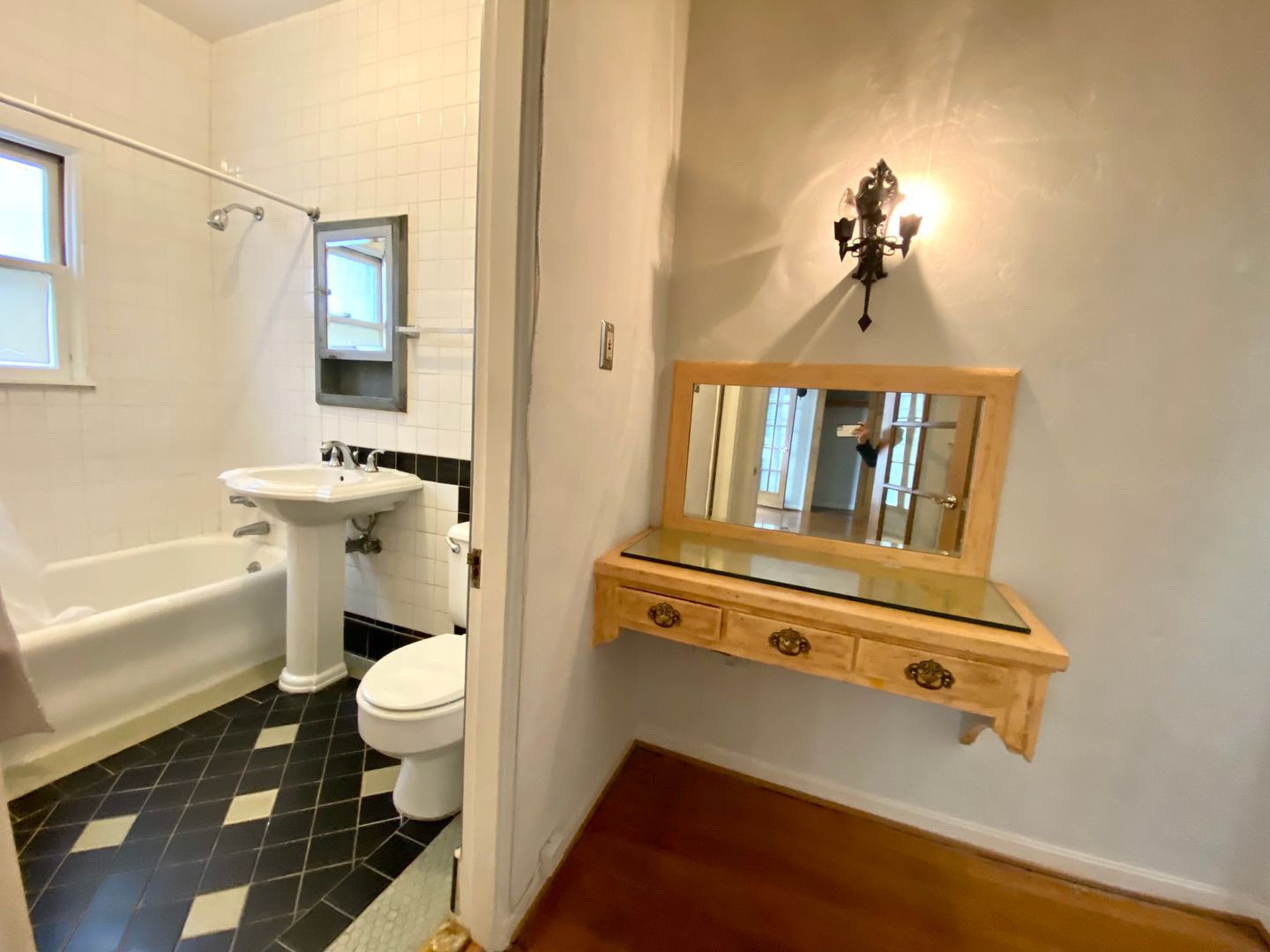 Wood Beamed ceilings,Natural Sunlight, Built in Vanity,