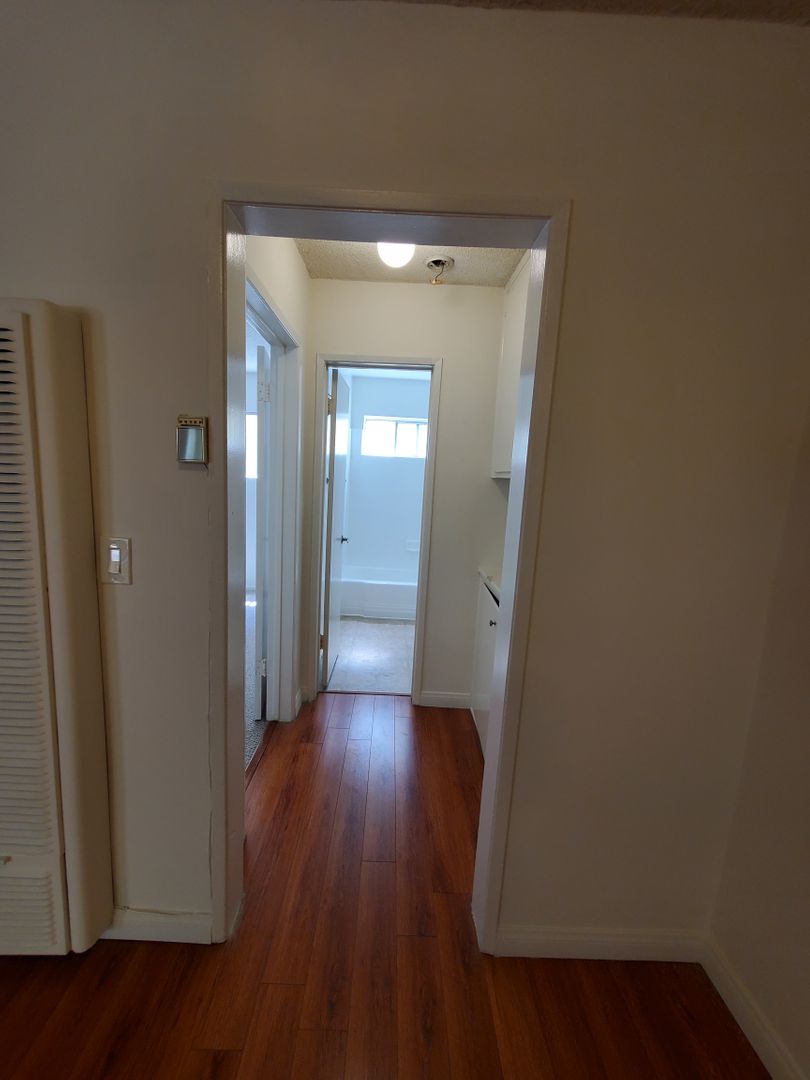 Freshly painted unit with laminate flooring in living room, kitchen, and hallway and new carpet in bedroom. Spacious living room. Includes one parking space. Schedule your showing today!