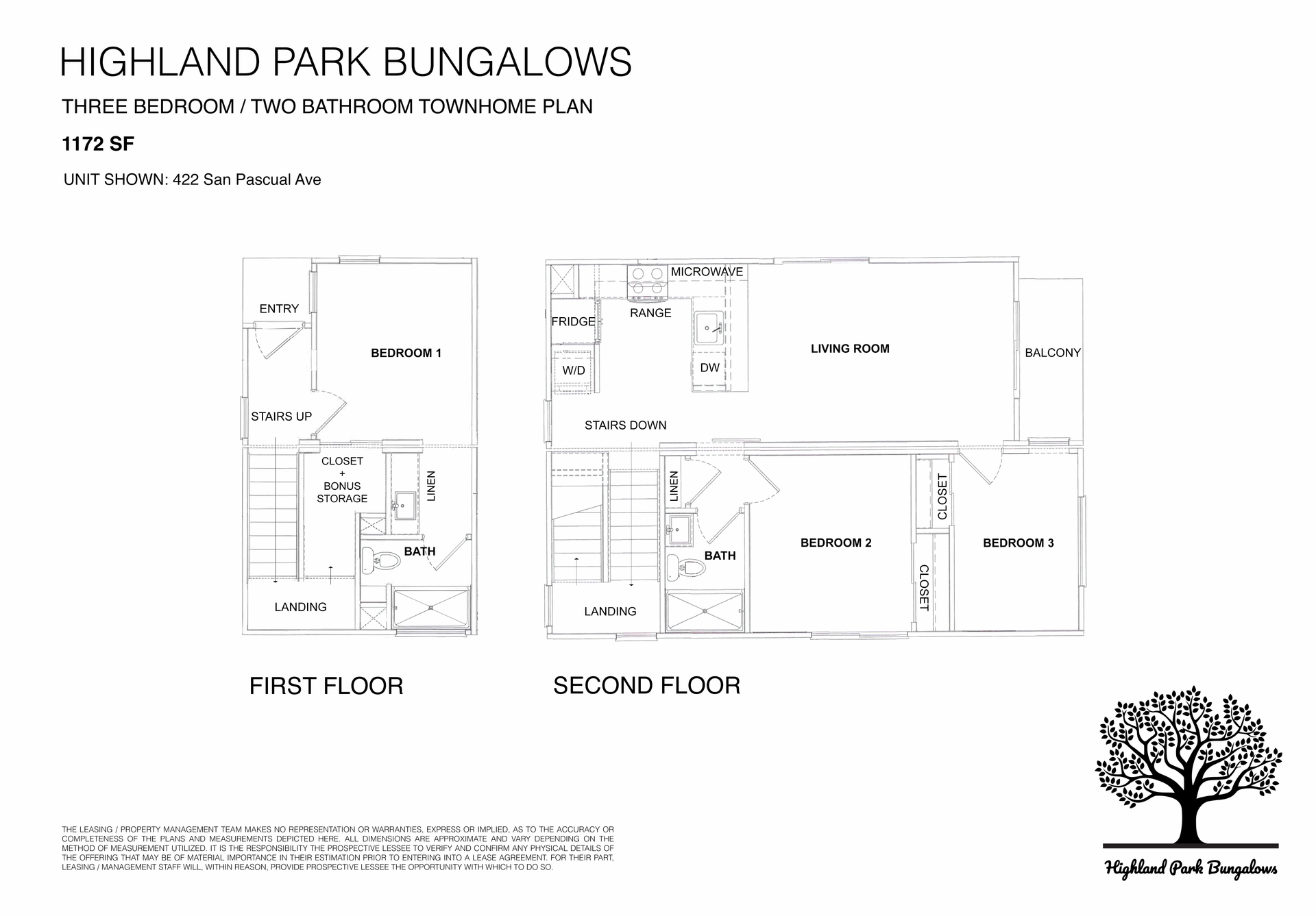 Our 3-bdrm townhouse is approximately 1,172 SF, perfect for a family or a group of roommates, or anyone else looking for a spacious, two-story house. Each townhouse comes with a private deck and a private balcony, and both of our townhouses come with 2 reserved parking spaces adjacent to each townhouse.