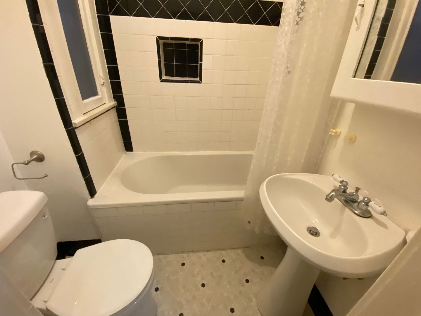 - 1 bathroom with pedestal sink and original tub
