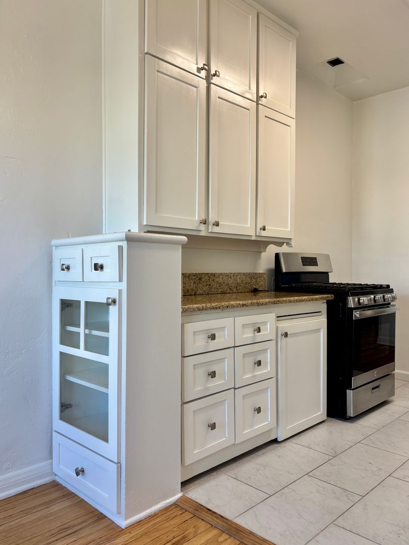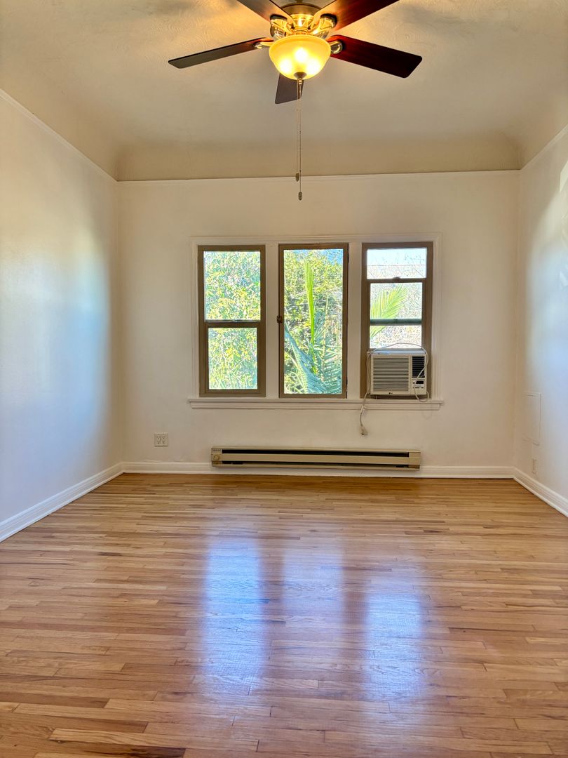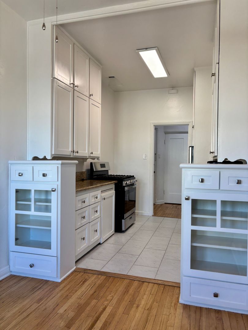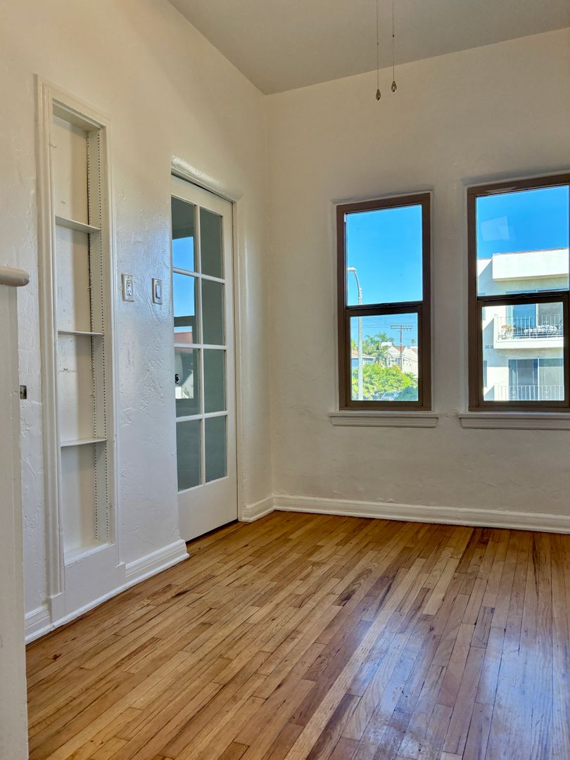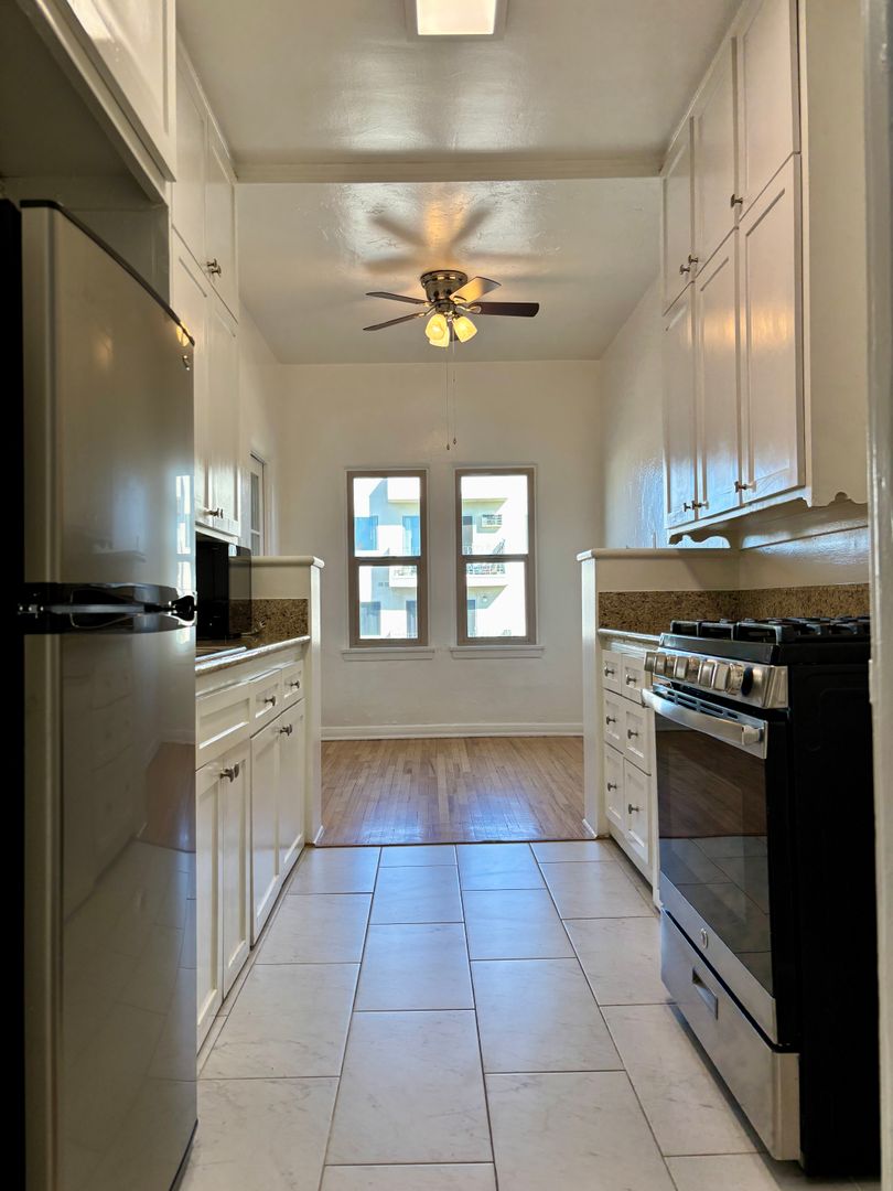 Welcome to this charming 1920's original building located in the heart of the Fairfax District in Los Angeles. This top corner unit features beautiful original hardwood flooring throughout. Enjoy lots of double pane windows that offer natural light and breeze throughout the unit. Enjoy the convenience of a detached garage, onsite laundry, gated entry, and an intercom system for added security. A block away from Erewhon, The Grove, Melrose District, and blocks from Whole Foods, Trader Joes, coffee shops, top rated restaurants and parks. Don't miss out on the opportunity to call this cozy 1 bedroom, 1 bathroom apartment your new home. Contact us today to schedule a tour and experience the vintage charm of this unique living space.