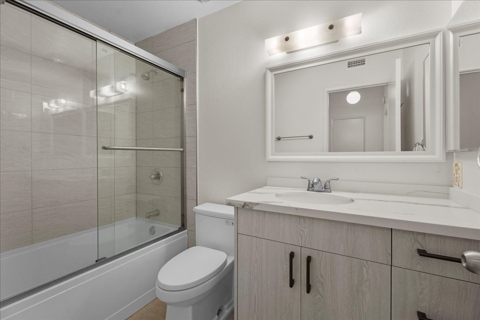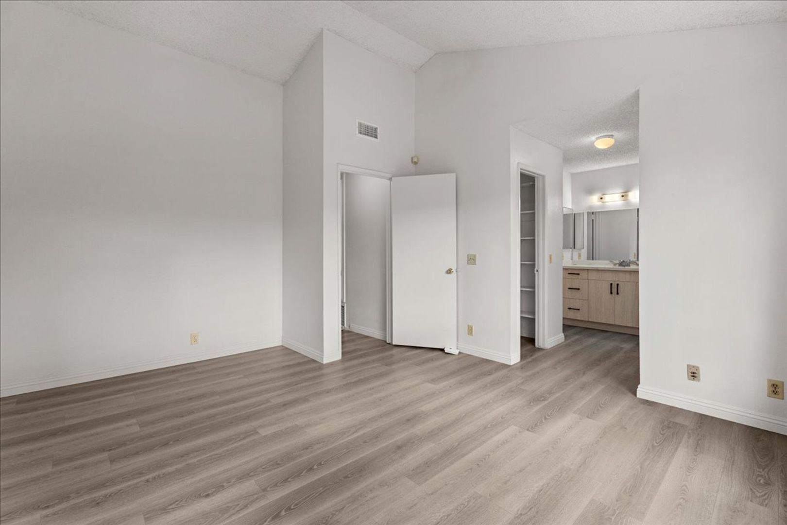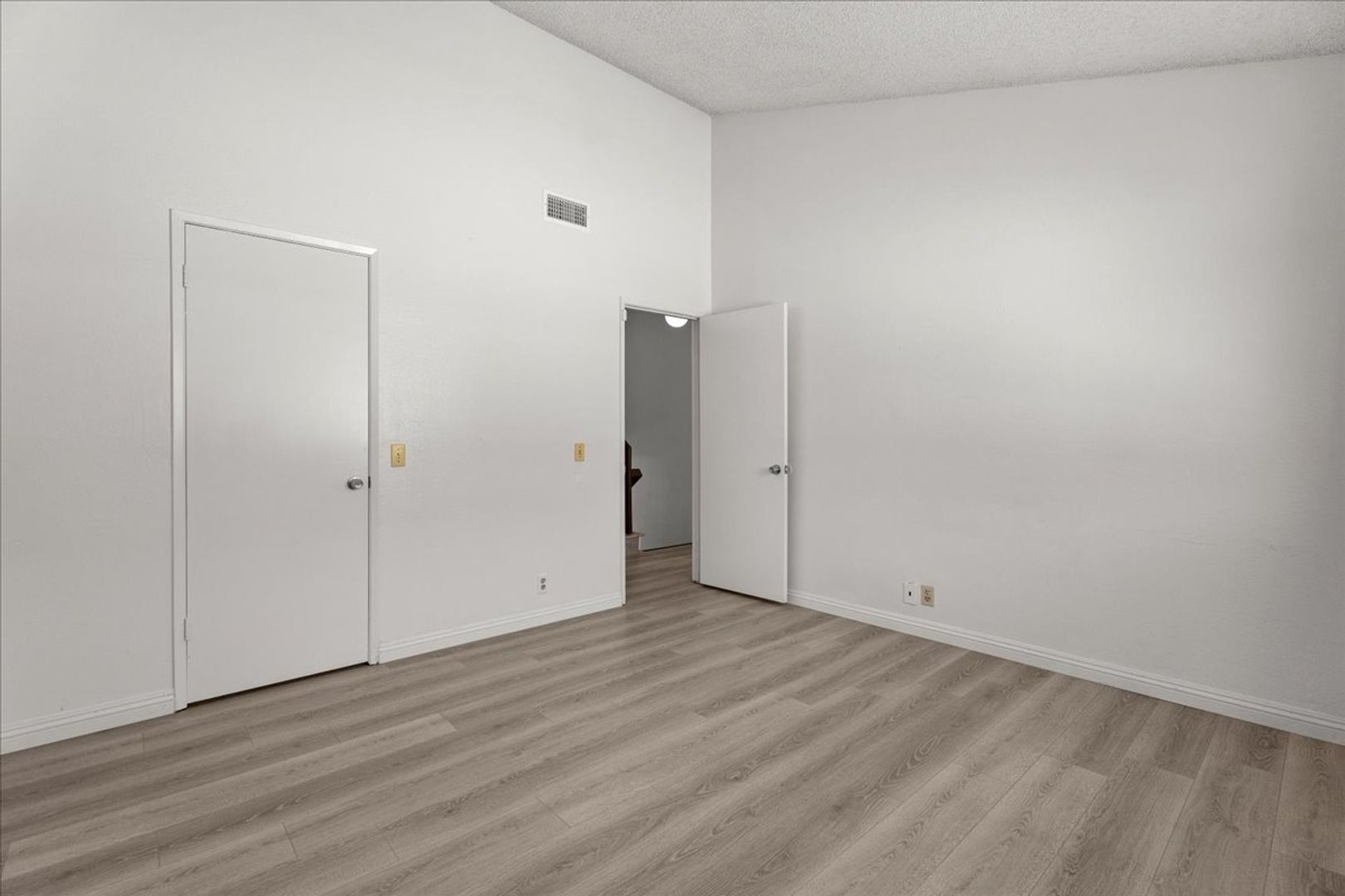 Welcome to this light-filled 3-bedroom, 2.5-bath townhome offering almost 1,200 sqft of stylish living across four levels. The bright kitchen features quartz countertops, stainless steel appliances, and new cabinetry, opening to a spacious dining area and living room with direct patio access. Upstairs are two comfortable bedrooms with generous closets and an updated full bath. The top floor is a private retreat, featuring a large primary suite with vaulted ceilings, large closets, and an en-suite bath. Additional highlights include in-unit laundry, new flooring throughout, and a direct-access 2-car garage. Enjoy the comfort of central air and the charm of a gated front courtyard. Located in a well-maintained community close to shops, dining, and freeways for an easy commute.