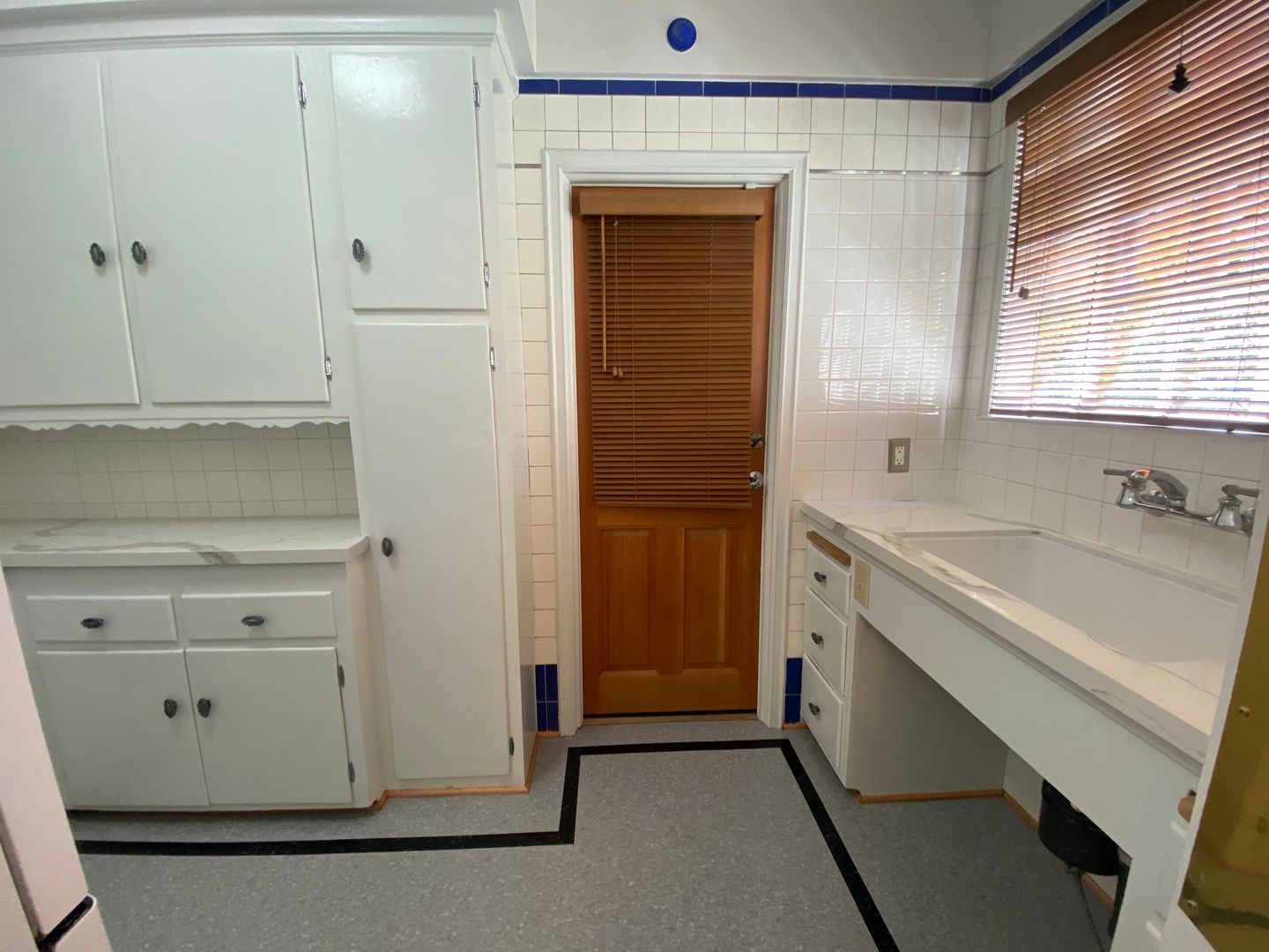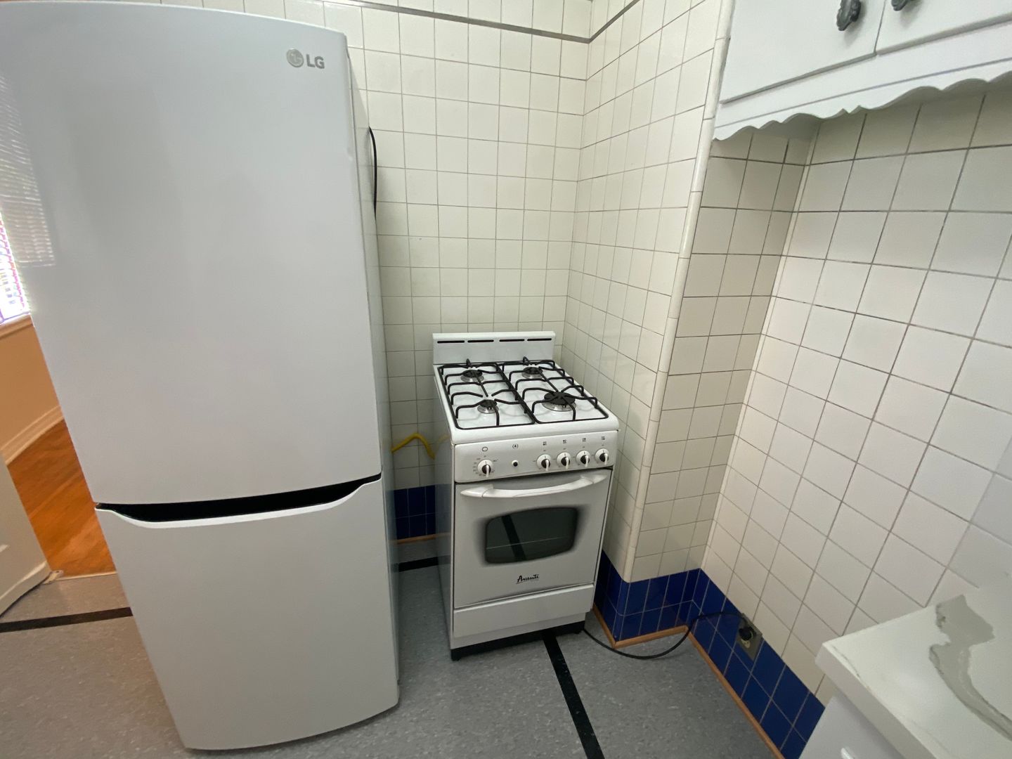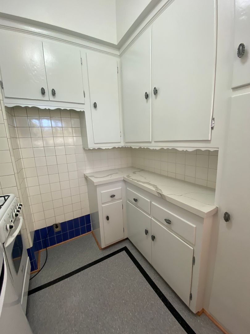 Fully renovated kitchen with new countertops, sink, stove, and refrigerator