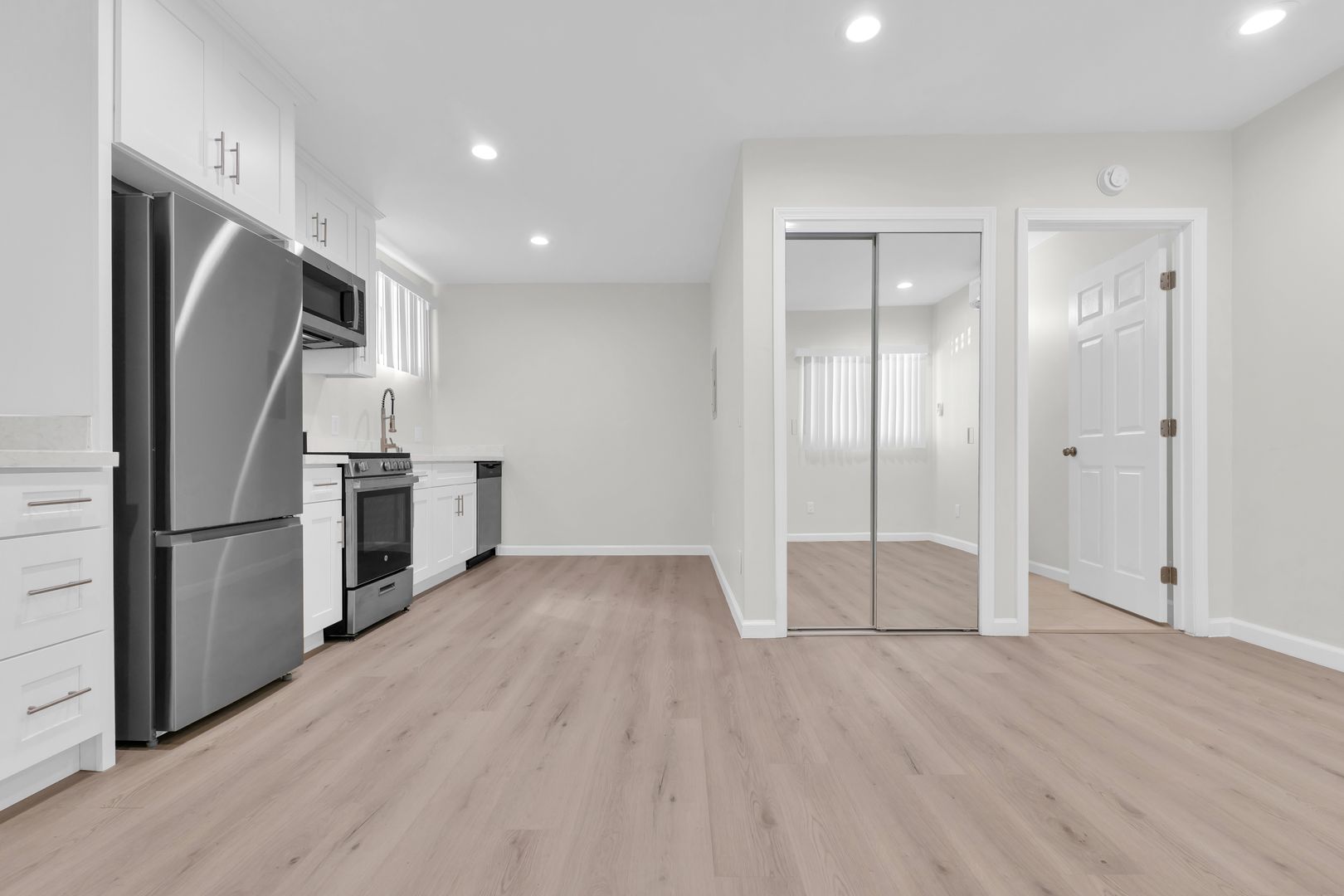 This newly constructed apartment is centrally located in prime Westwood on prestigious Manning Avenue directly off the Wilshire corridor adjacent to the grand Los Angeles California Temple. With NO SHARED WALLS, and modern conveniences such as in-unit washer and dryer, stainless steel appliances, quartz countertops, new cabinets, new central A/C & Heating, new double pane hi-efficiency windows, recessed lighting, new plumbing, new electrical, mixed with the mid-century charm of the buildings' original architecture and design, this living space provides all of the essentials needed to create the perfect home without. This highly desirable unit will move quickly; plentiful street parking only.